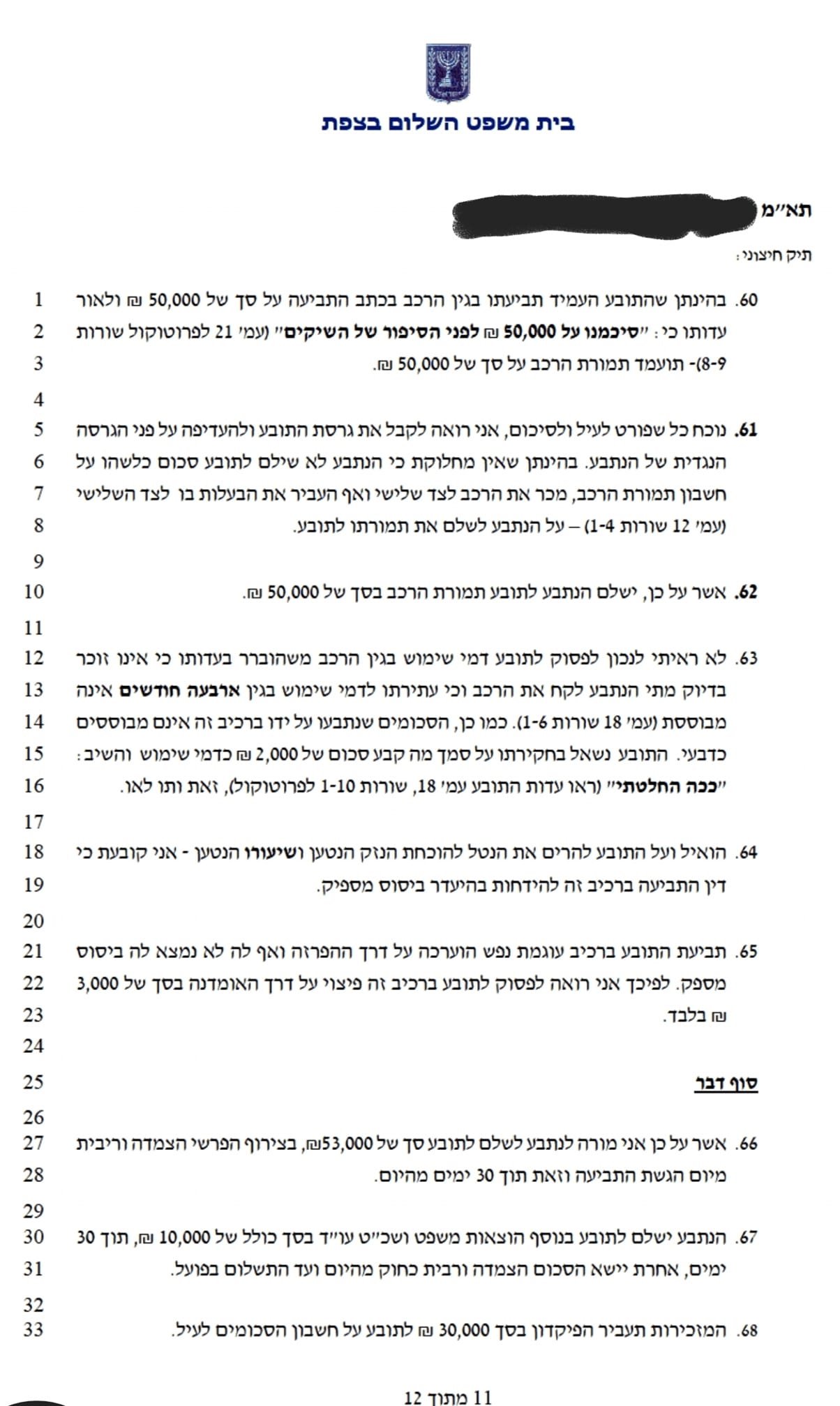 מעניק ייצוג משפטי ללקוחות בקרית שמונה, חצור הגלילית, צפת, ראש פינה, מטולה, שלומי וכל אזור הצפון.
